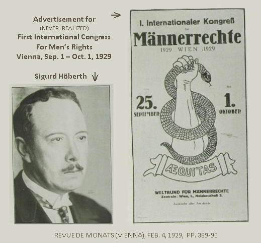 But the world’s first men’s rights organization was founded as an international one, founded in 1926 in Vienna, Liga Für Menschenrechte (League for Men’s Rights). And if you are wondering what book you might find it mentioned in, or what encyclopedia lists it, or which college professor discusses it, the answer is: none, zilch, zippo. In other words, the world’s first men’s rights organization has been erased from history as if it never existed.